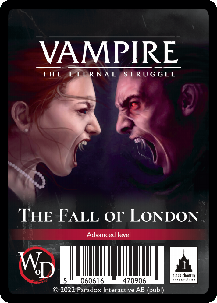 The preconstructed deck includes not just reprints, but also entirely new crypt cards and several new library cards bolstering the political aspect of the game. It is also suitable for new players looking to start with a ready-made deck that explores the dealings, negotiations, and machinations of the Eternal Struggle. The deck is ready for play out of the box or customisable with other Vampire: The Eternal Struggle cards. Each player needs a deck to play.
